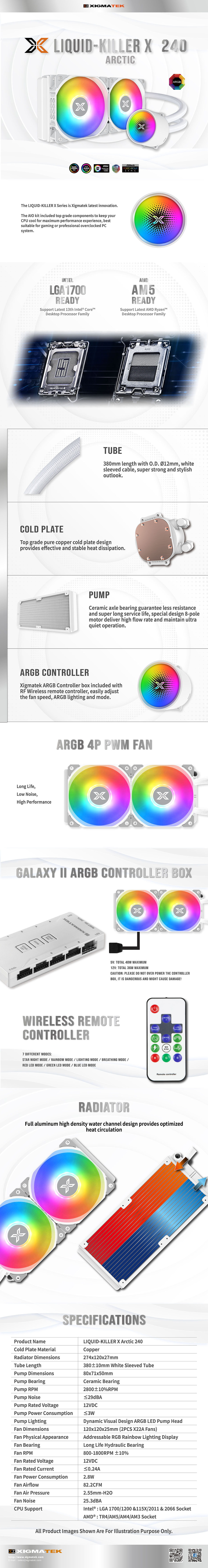 - Xigmatek Liquid Killer X 240 Arctic White ARGB 240mm CPU Liquid Cooler
